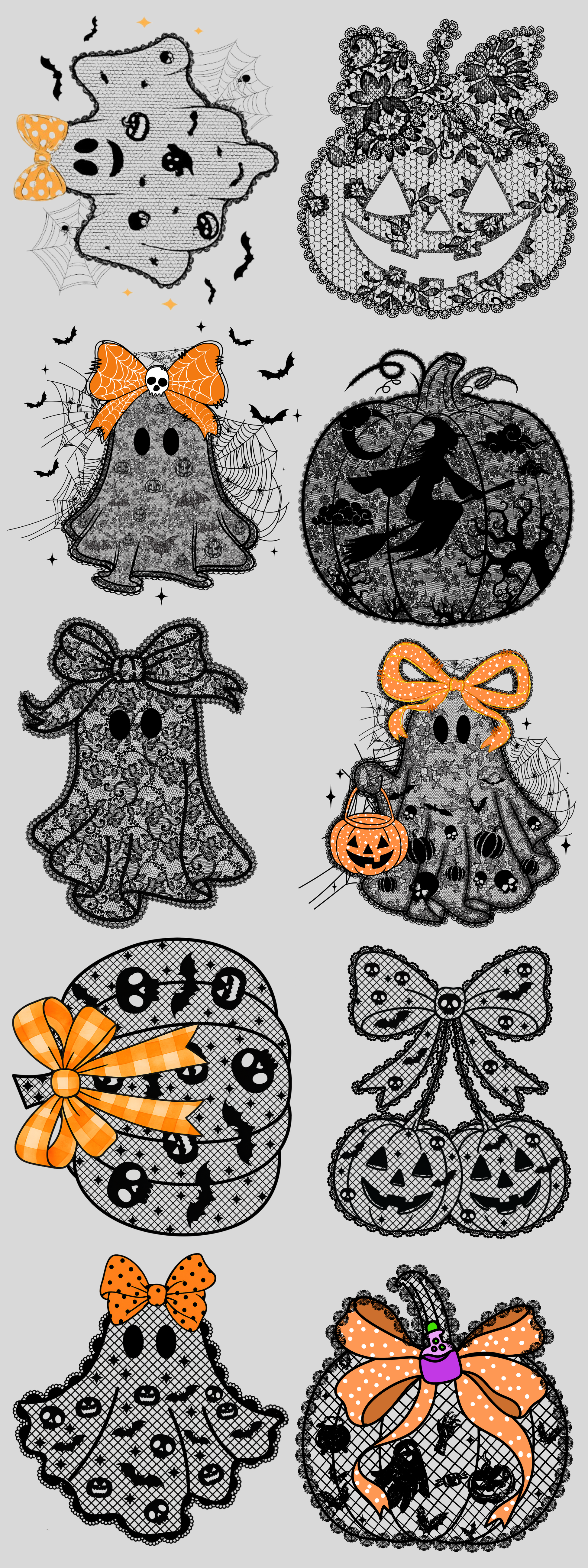 PREMADE GANG SHEET - Lace Pumpkins & Ghosts Transfers